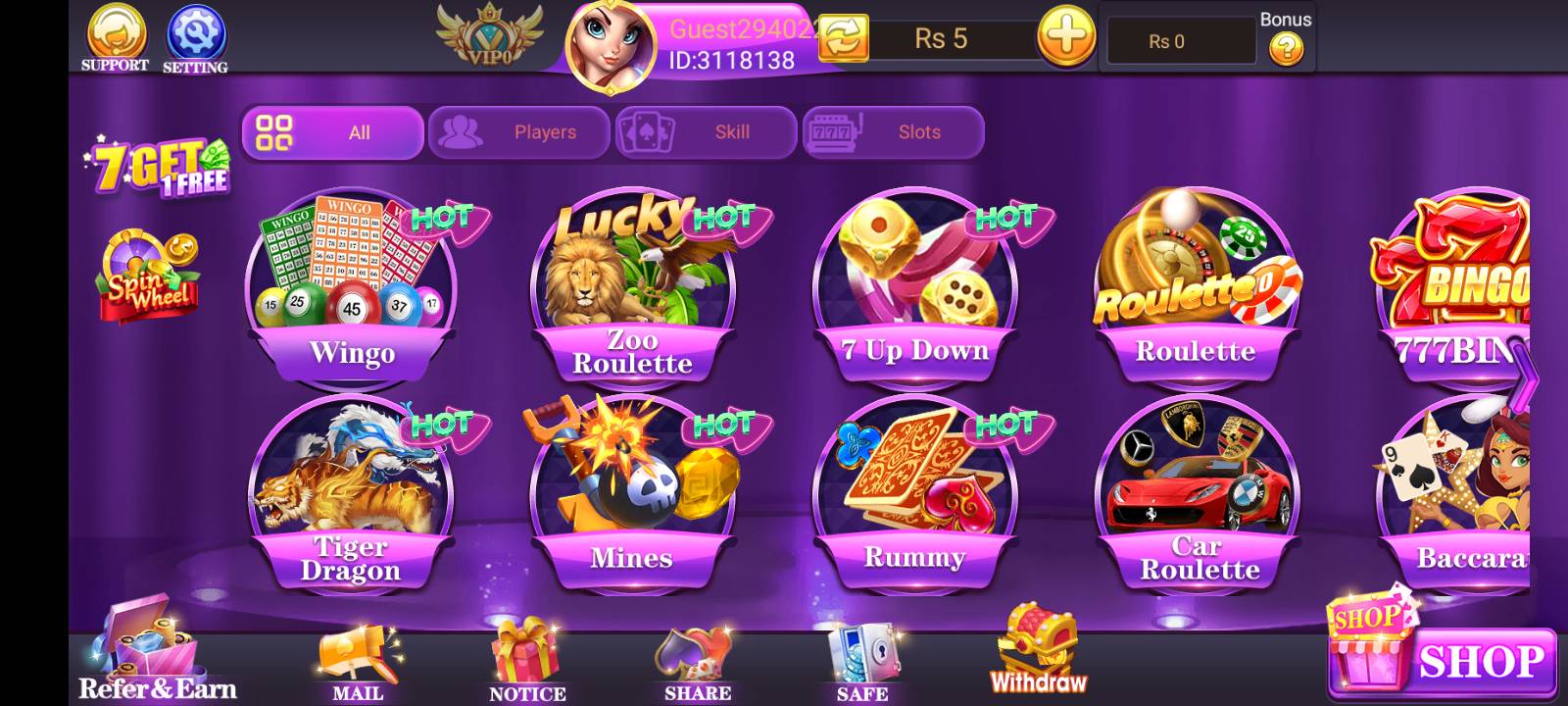 - Wide variety of games including Teen Patti, Poker, and Slots