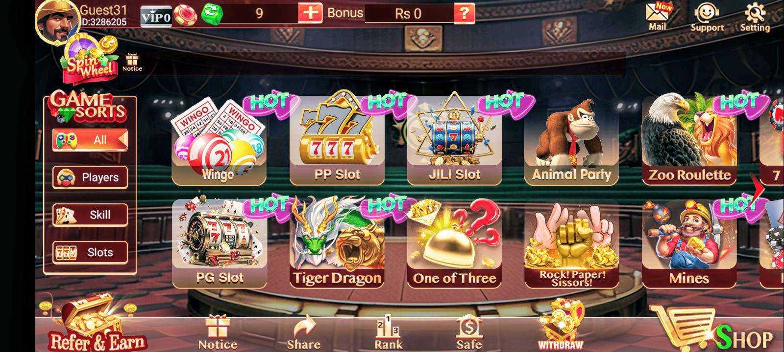 The game offers a welcome bonus, daily login rewards, referral bonuses, and special promotions.