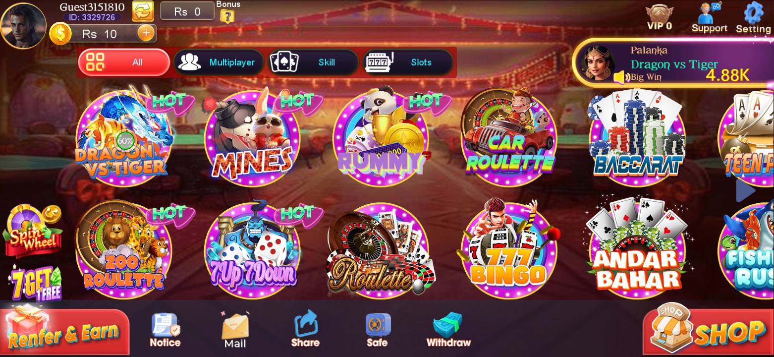 - Lucky Draws – Chance-based system to win large cash rewards.